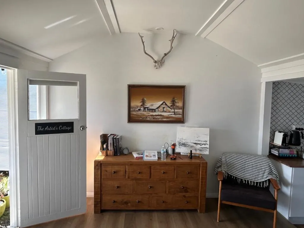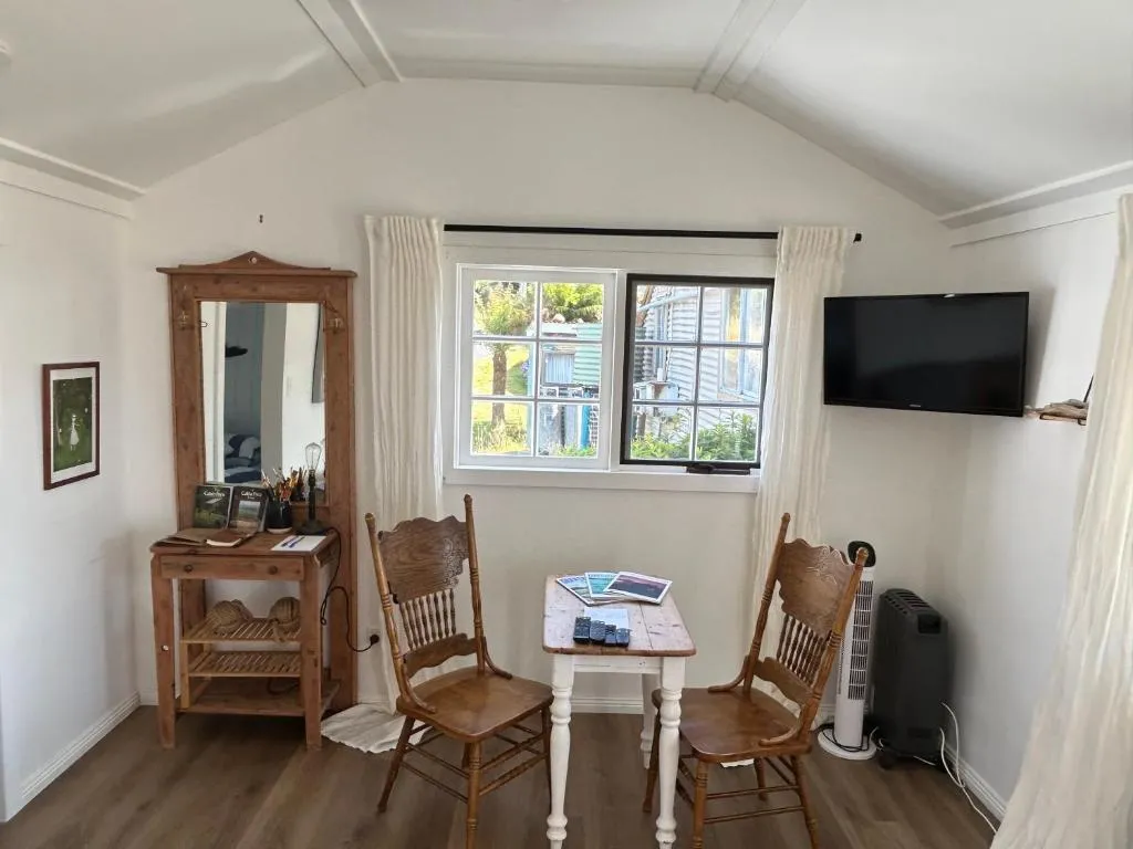 The Artists Cottage Waterfront Hideaway offers free parking for guests while maintaining non-smoking rooms throughout its waterfront retreat near Strahan. The cottage provides direct access to scenic views along Lettes Bay Road, blending tranquility with outdoor convenience. Nearby attractions include Regatta Point just two minutes away by car, making it ideal for quick coastal walks or photography sessions against rugged cliffs. Tracks on Point lies even closer at only two minutes drive, offering hiking trails through lush rainforest leading to panoramic vistas over Macquarie Harbour. For those seeking adventure further afield, Hogarth Falls sits seven minutes away by vehicle, featuring cascading waterfalls framed by ancient eucalyptus forests perfect for nature exploration. Lowana’s historic village center can be reached within ten minutes’ drive, providing boutique shops and cafés alongside heritage architecture dating back to Tasmania’s early timber industry days.